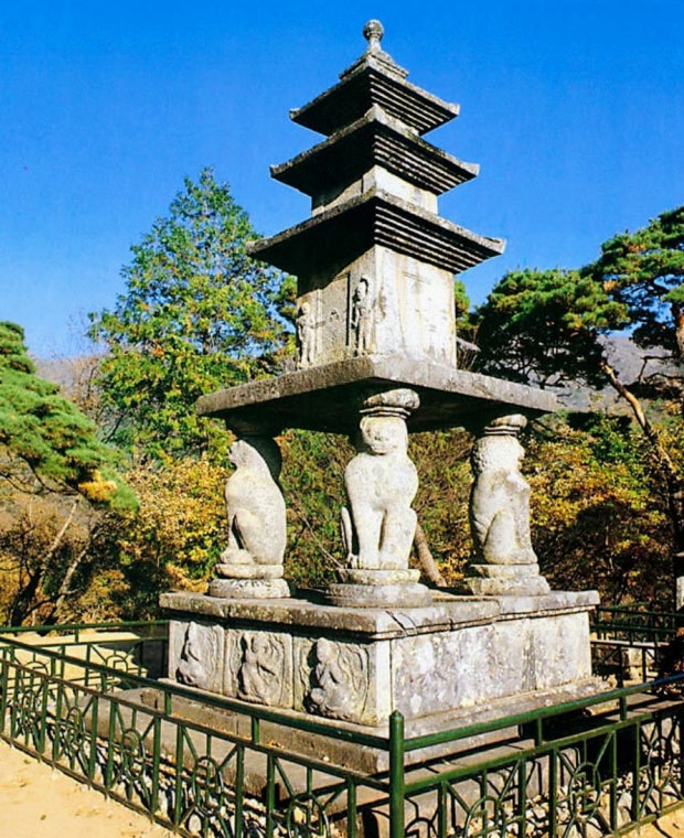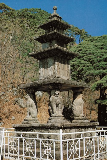 석사자 네 마리가 받치고 있는 독특한 형태의 석탑.